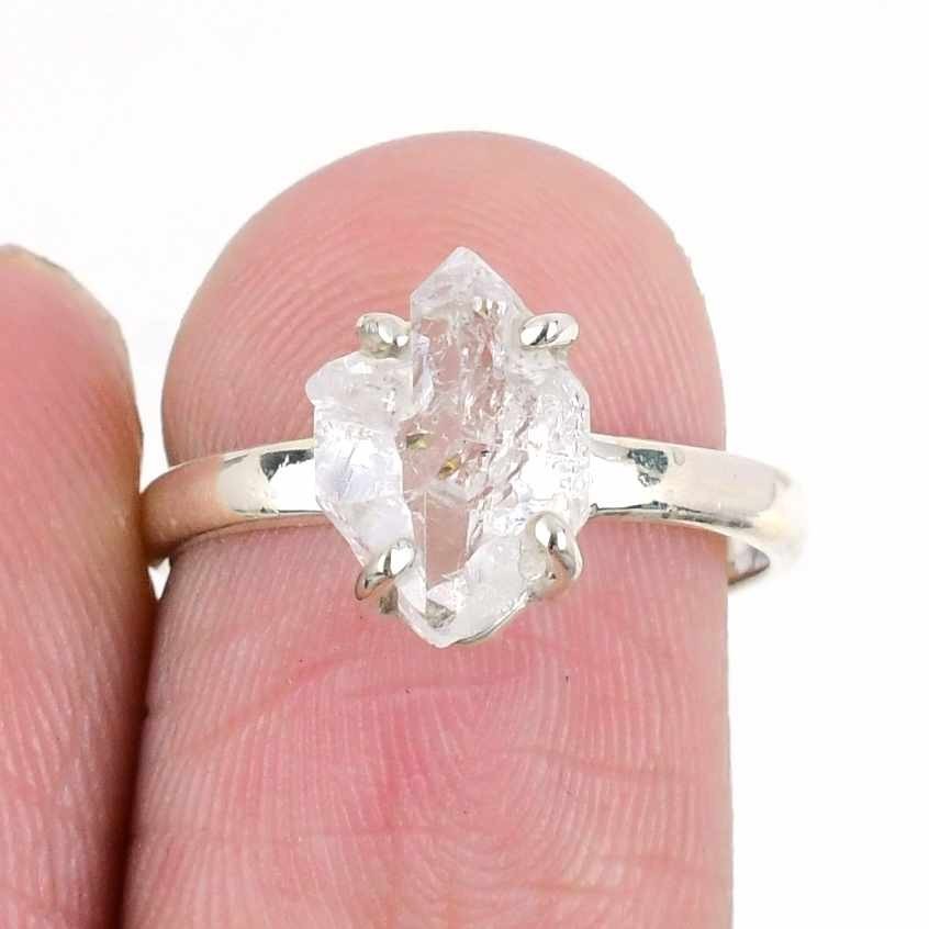 Herkimer Diamond Gemstone Cluster Ethnic Ring Jewelry Size 7 925 Sterling Silver