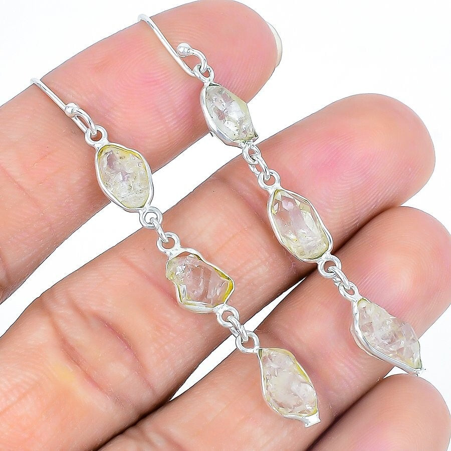 Herkimer Diamond Gemstone Solid Silver Dangle Drop Crown Chakra Sister Earrings