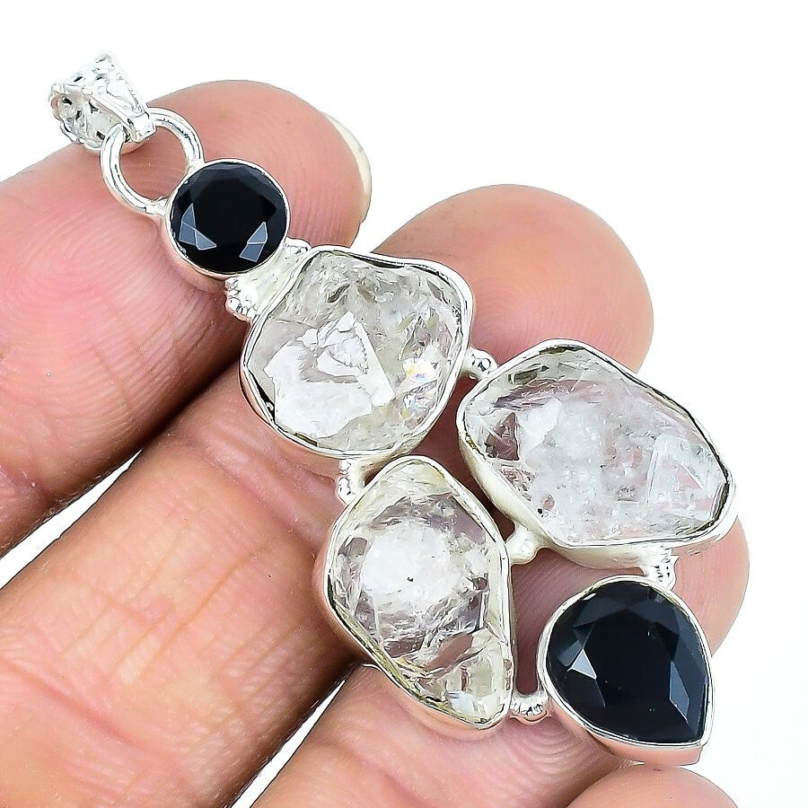 Herkimer Diamond Stone Artisan Crown Chakra Boho Pendant Jewelry Sterling Silver