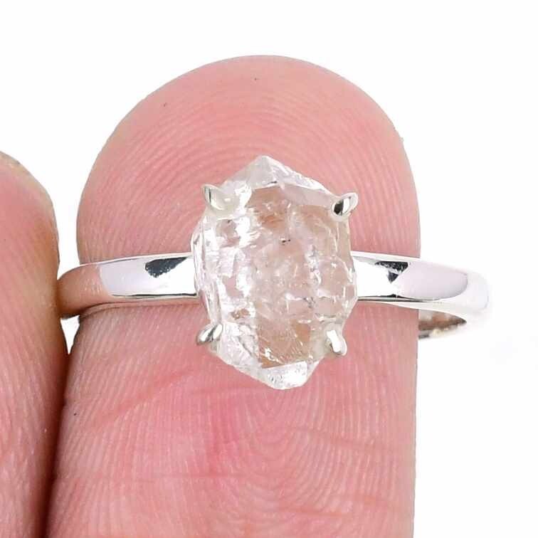 Herkimer Diamond Stone Cluster Handcrafted Ring Jewelry Size 8 925 Solid Silver