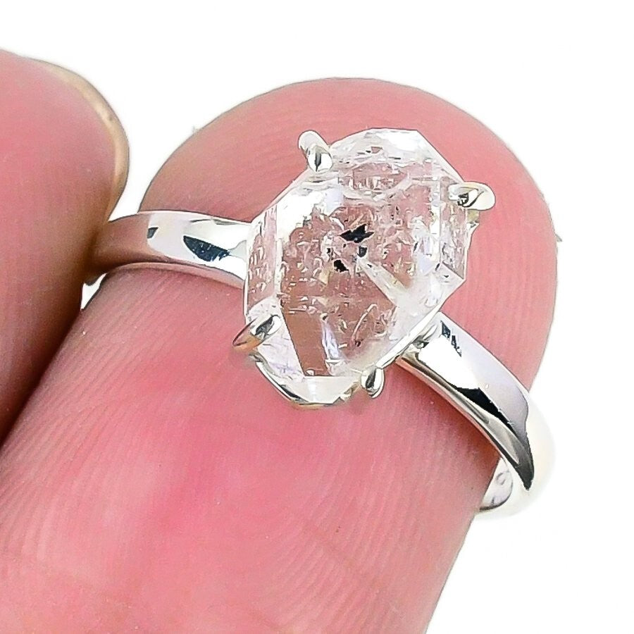 Herkimer Diamond Stone Solid Silver Handcrafted Cluster Boho Ring Jewelry Size 7