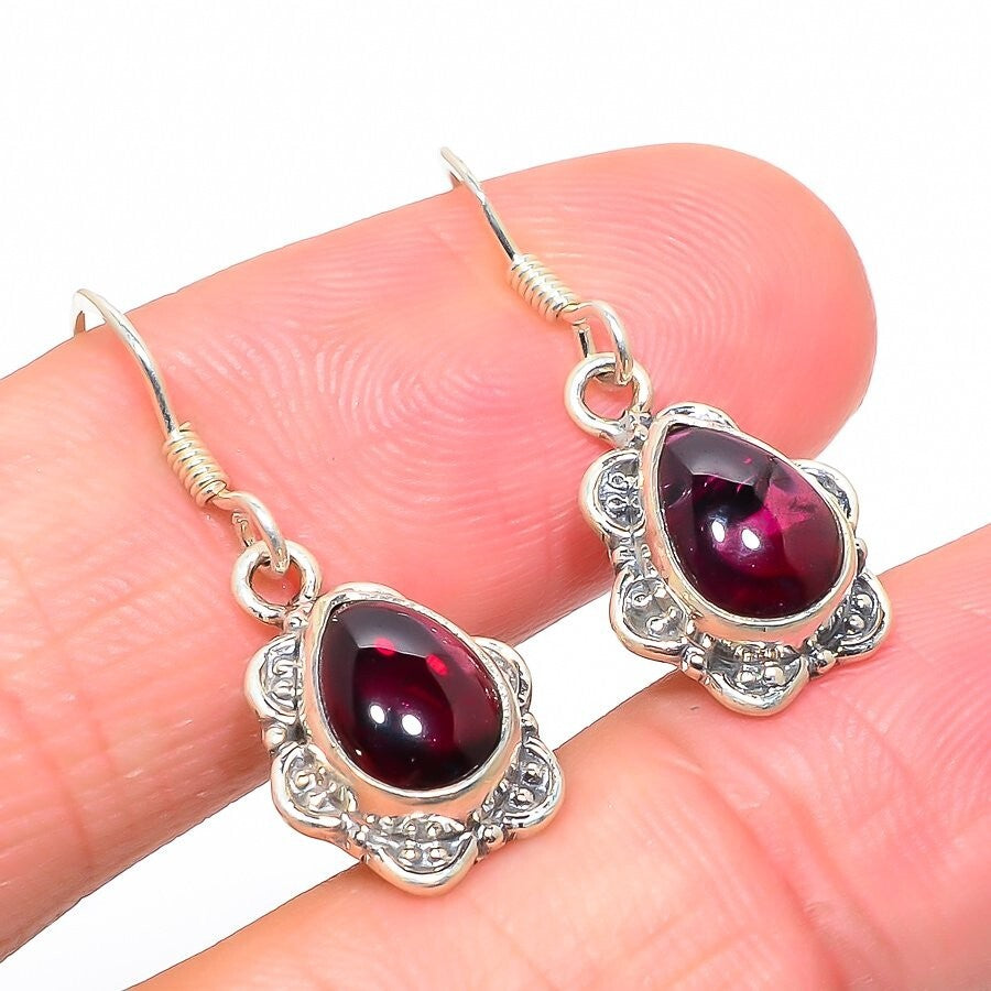 Hessonite Garnet Gemstone Solid Silver Elegant Drop Dangle Hook Ethnic Earrings