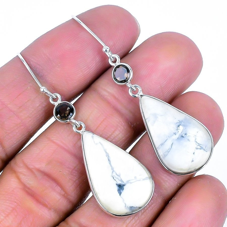 Howlite Gemstone Solid Silver Unique Dangle Drop Ethnic Boho Earrings Jewelry