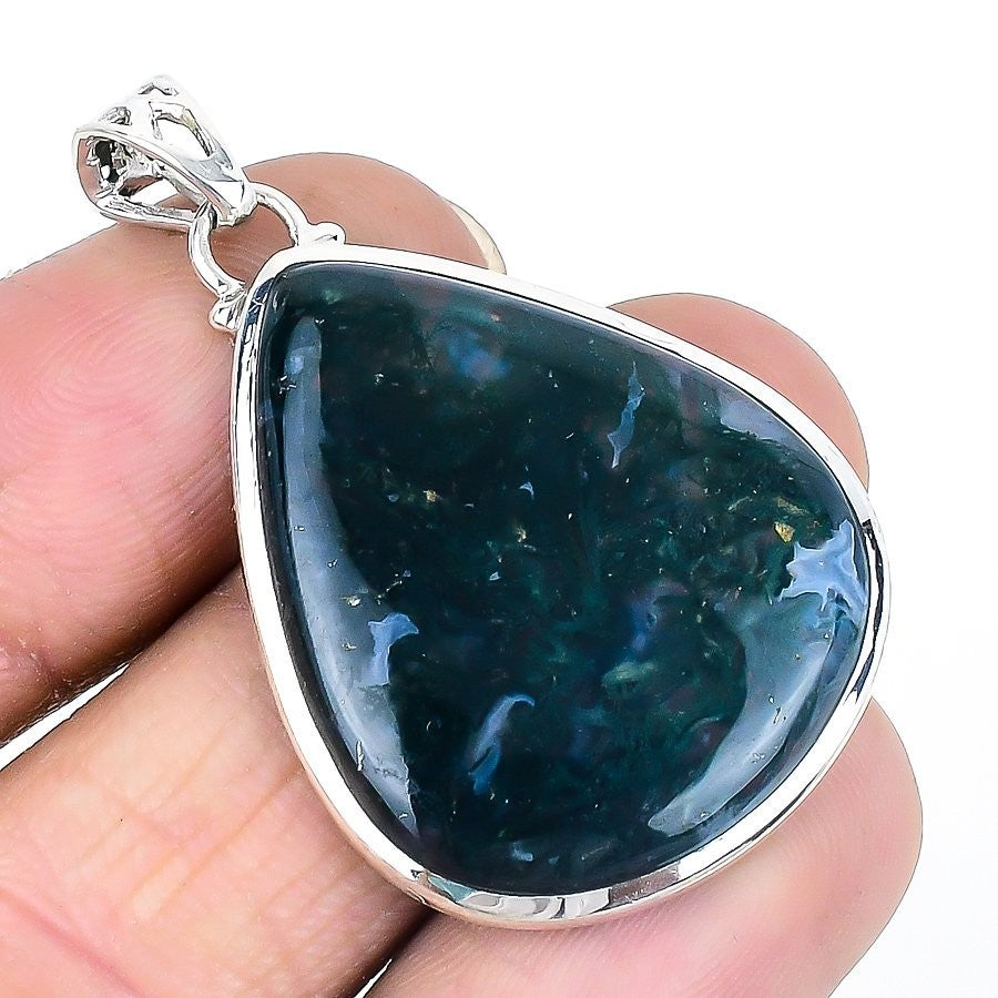 Indian Moss Agate Gemstone Engagement Daughter Gift New Pendant 925 Solid Silver