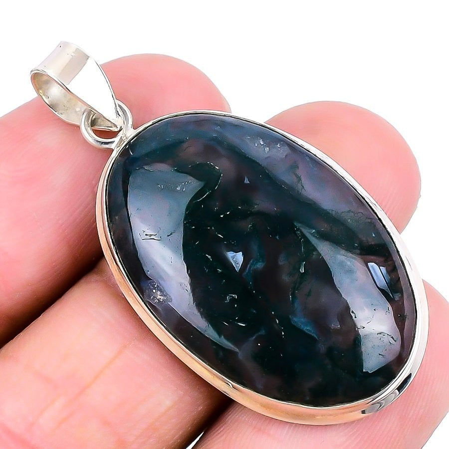 Indian Moss Agate Stone Handcrafted Engagement New Pendant Solid Sterling Silver