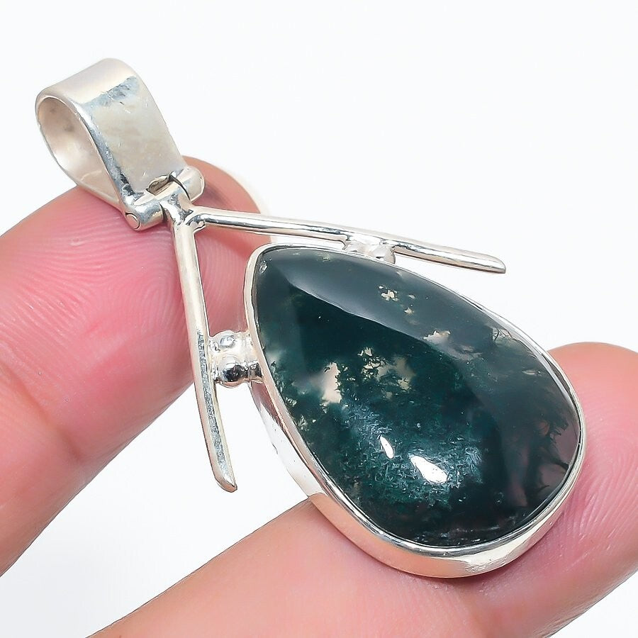Indian Moss Agate Stone Sterling Silver Sister Trendy Birthday Pendant Jewelry