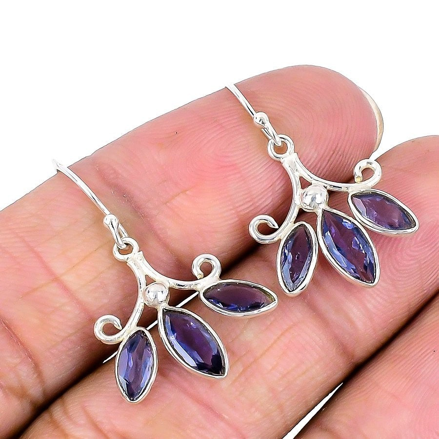 Elegant Iolite Stone Hook Drop Dangle Daughters Day in 925 S