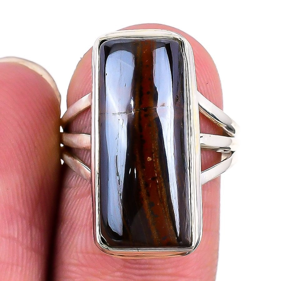 Iron Tiger Eye Stone 925 Silver Handmade Art Deco Statement Wedding Ring US 7