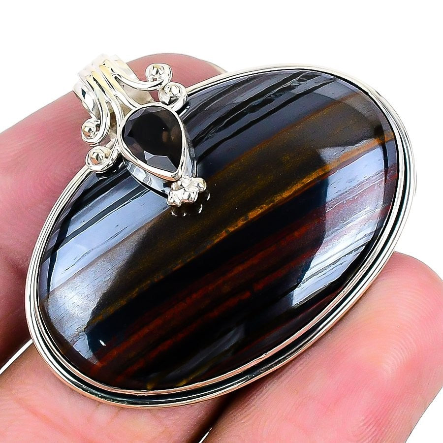 Iron tiger eye Stone Sister Handmade Trendy Ethnic Boho Pendant Sterling Silver