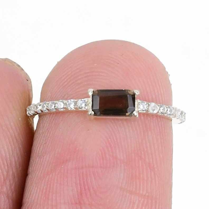 January Birth Natural Garnet 925 Sterling Silver Cluster Art Deco Ring Jewelry