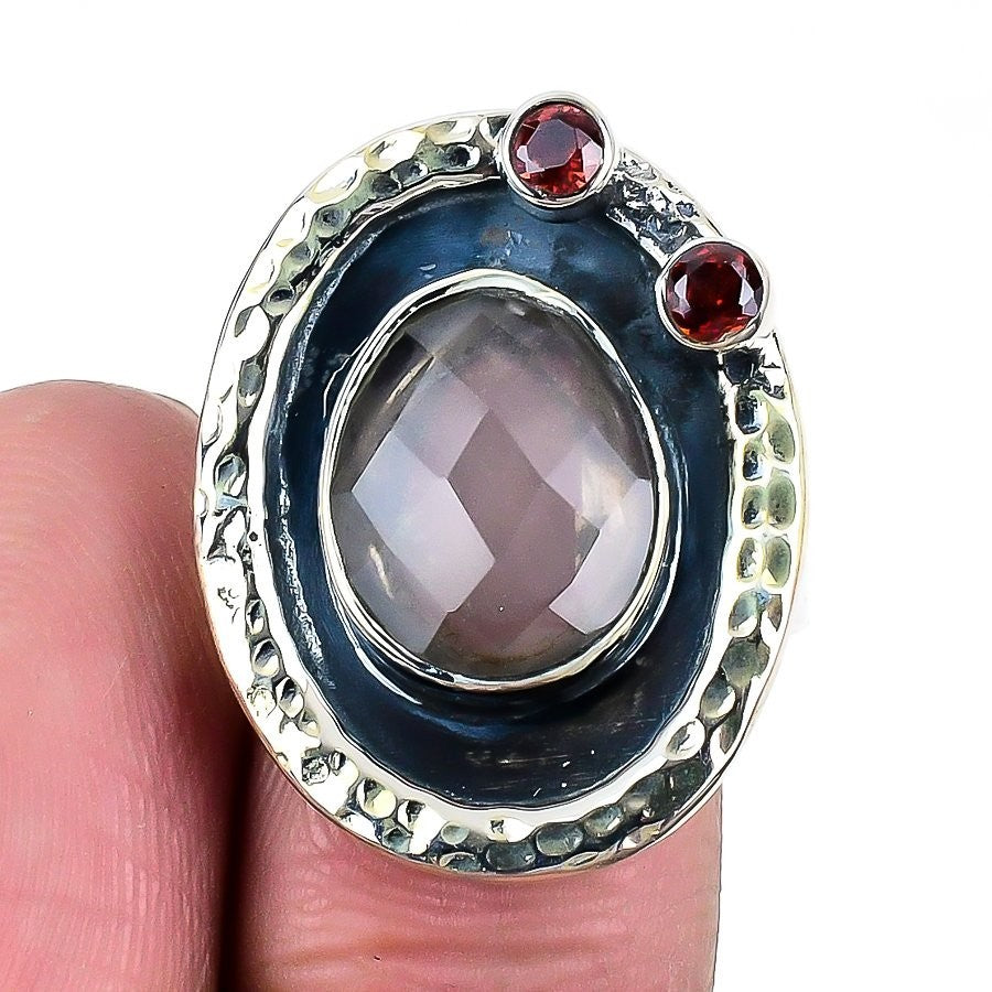 January Mozambique Garnet Gemstone Statement Ring Jewelry Sterling Silver US 9