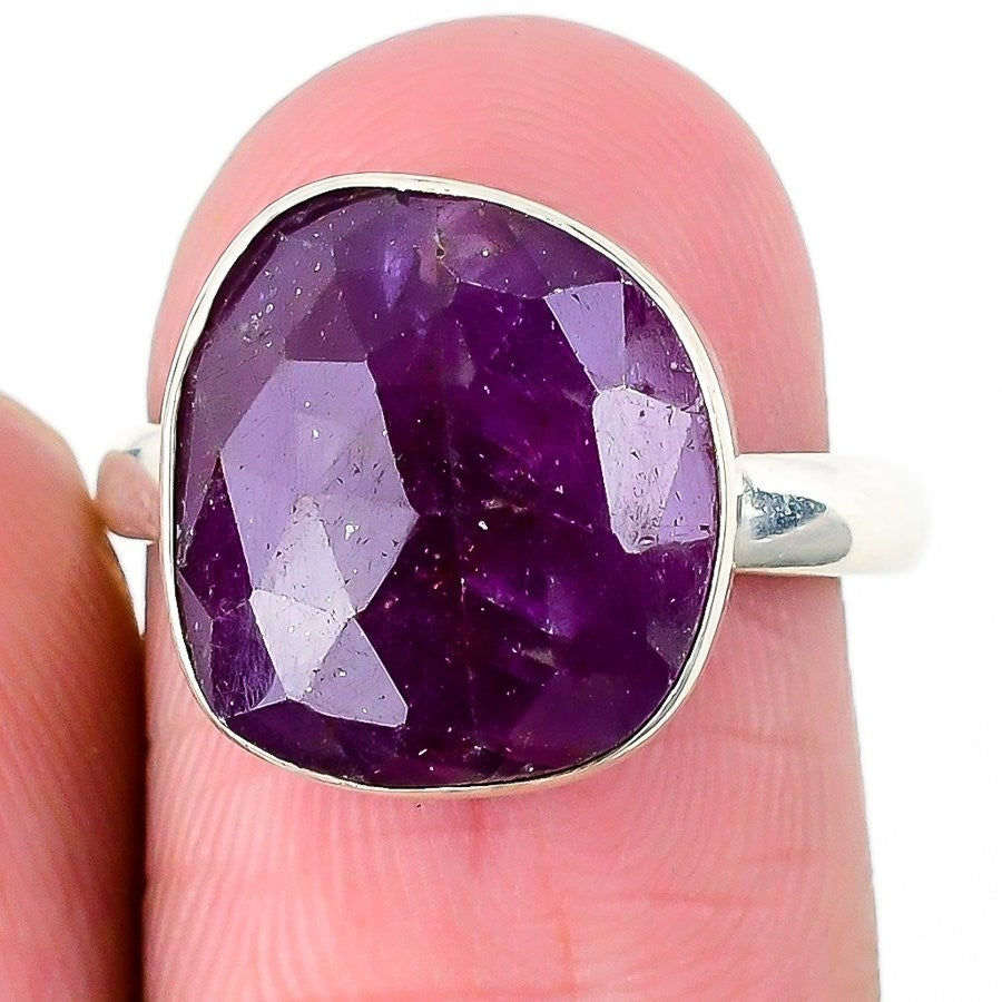 July Red Ruby Gemstone Sterling Silver Handmade Wedding Cluster Wife Ring Size 8