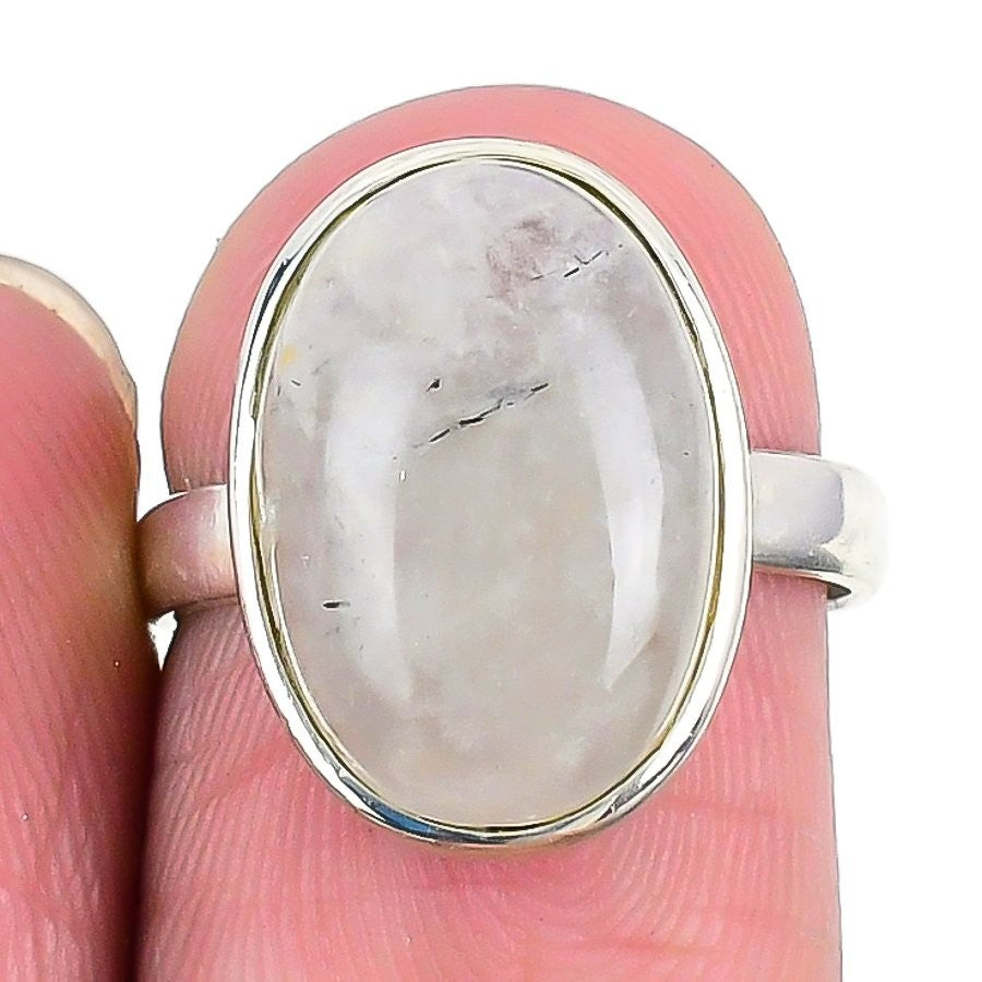 June Birth Moonstone Stone Artisan Statement Bezel Handmade Ring 925 Silver US 6