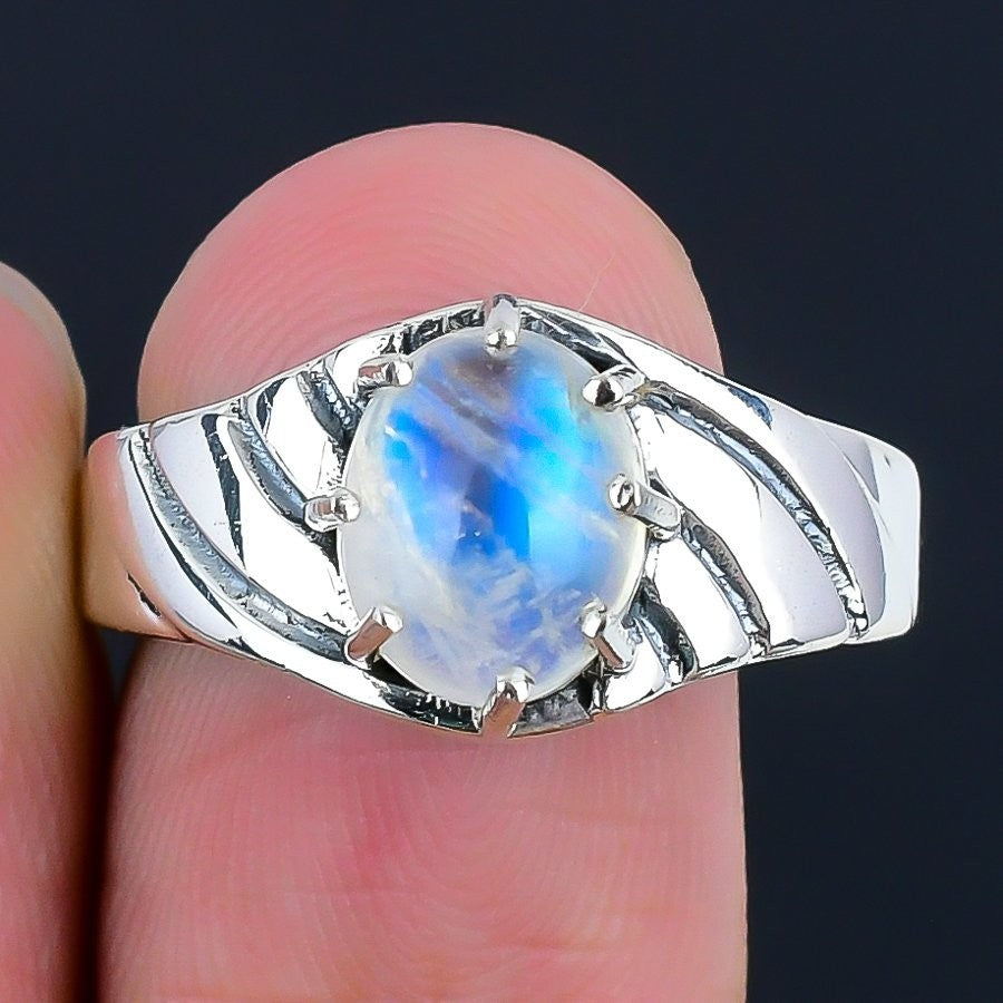 June Birth Moonstone Stone Sterling Silver Mother Statement Unique Ring Size 9