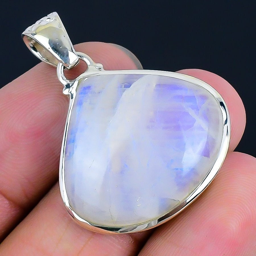 June Moonstone Gemstone Daughters Day Bezel Anniversary Pendant 925 Solid Silver