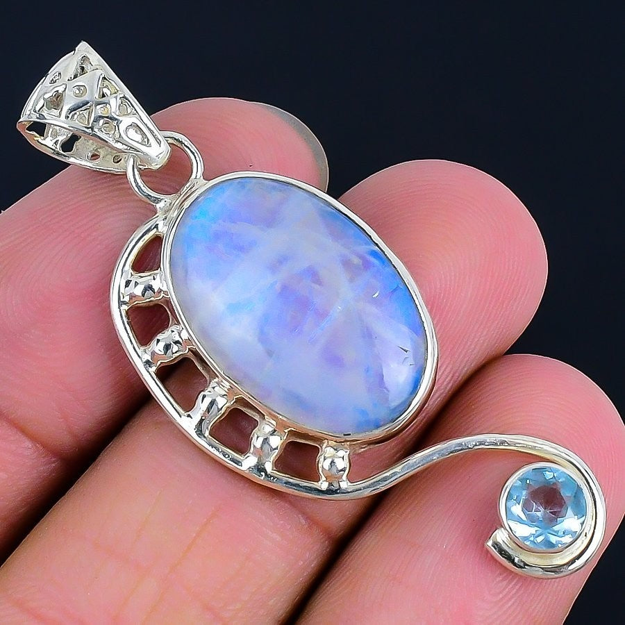 June Natural Moonstone 925�Solid�Silver Bezel Engagement Unique Pendant Jewelry