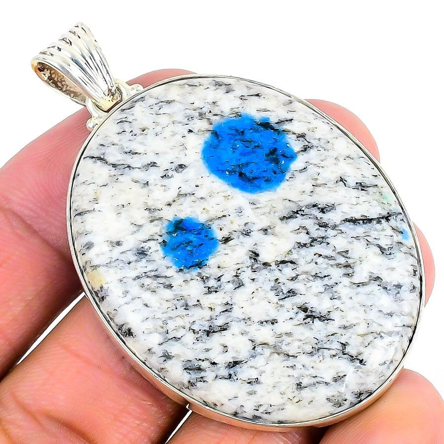 K2 Azurite Stone Solid Sterling Silver Best Sisters Gift Unique Bezel Pendant