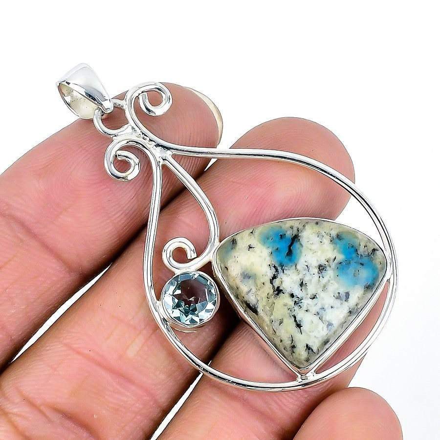 K2 Blue Azurite Stone Anniversary Ethnic Sister Boho Pendant 925 Sterling Silver