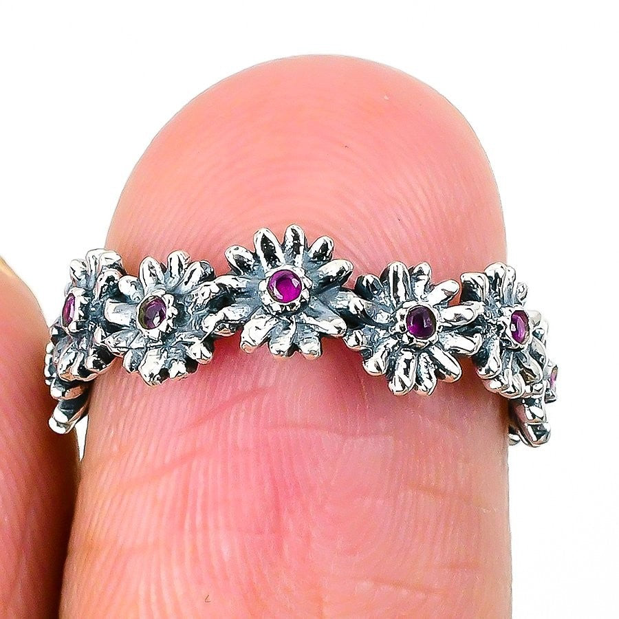 Kashmir Red Ruby Gemstone 925 Sterling Silver Boho Cluster Daughter Ring Size 7