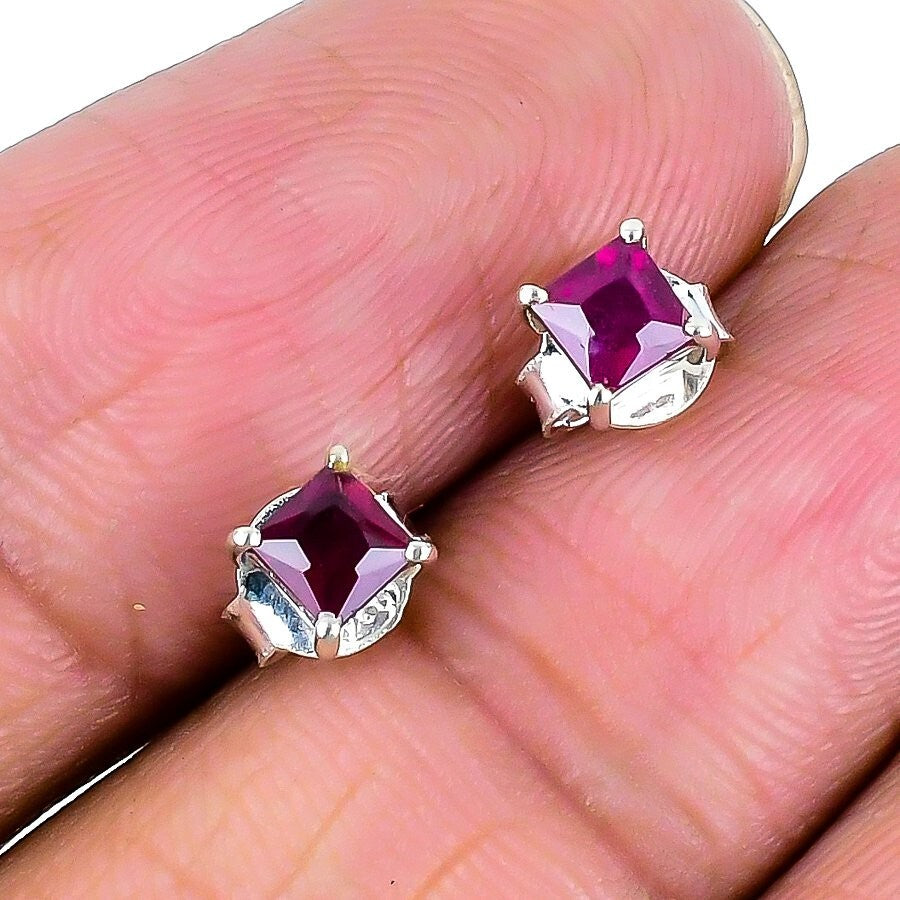 Kashmir Red Ruby Gemstone 925 Sterling Silver New Unique Stud Earrings Jewelry