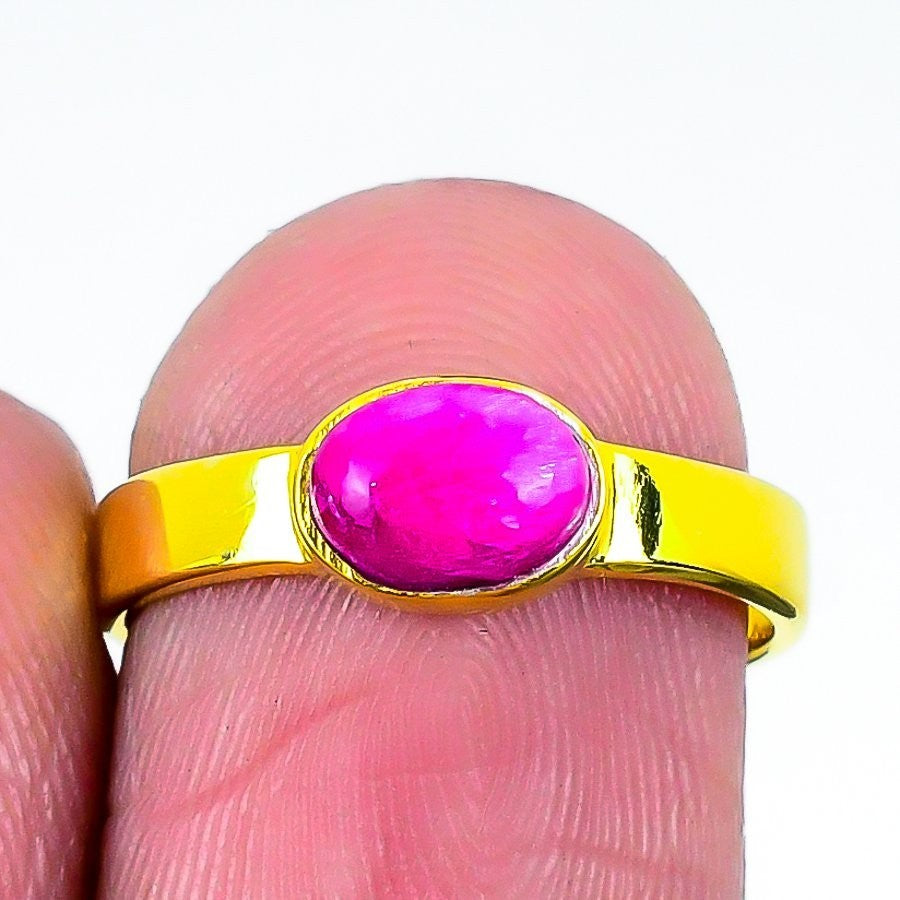 Kashmir Red Ruby Gemstone Solid Silver Daughter Boho Band Engagement Ring US 6.5