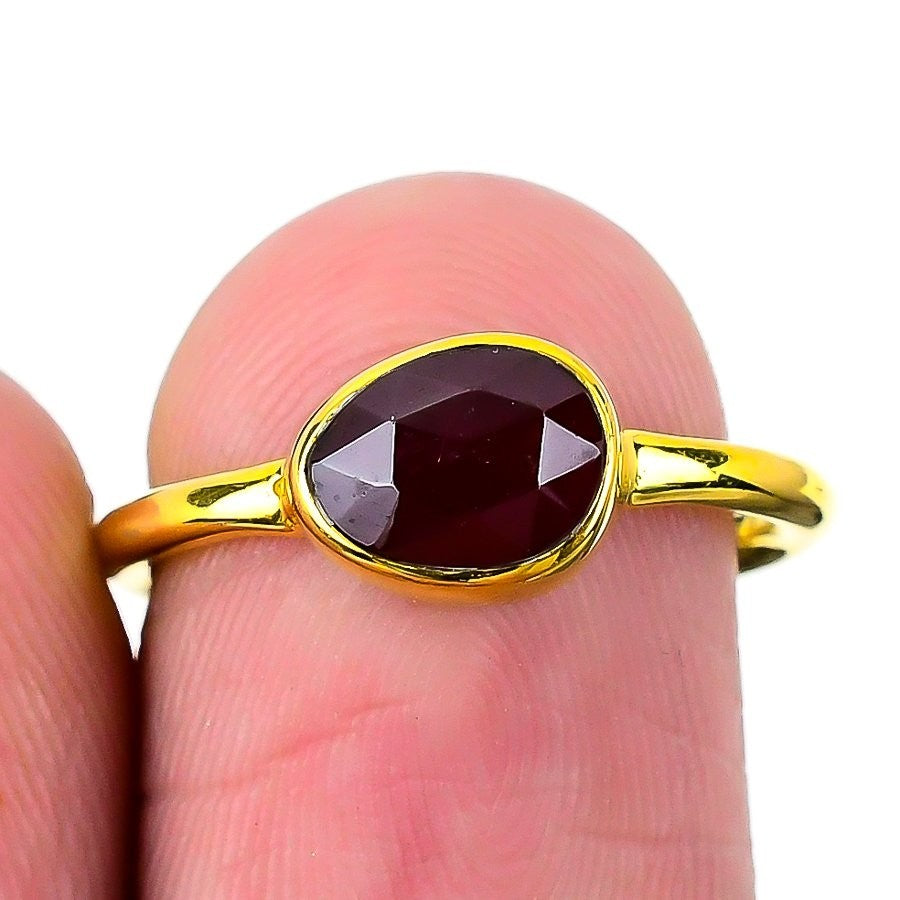 Kashmir Red Ruby Stone Solid Silver Boho Statement Birthday Ring Jewelry Size 7