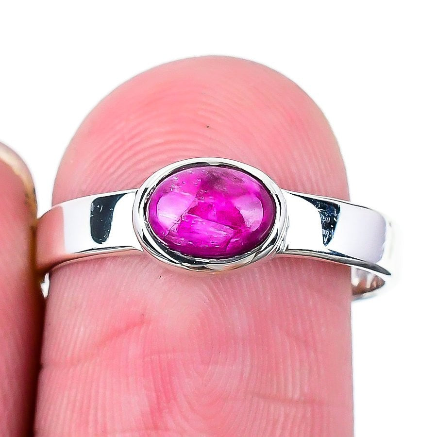 Kashmir Red Ruby Stone Sterling Silver Cluster Channel Set Birthday Ring Size 8