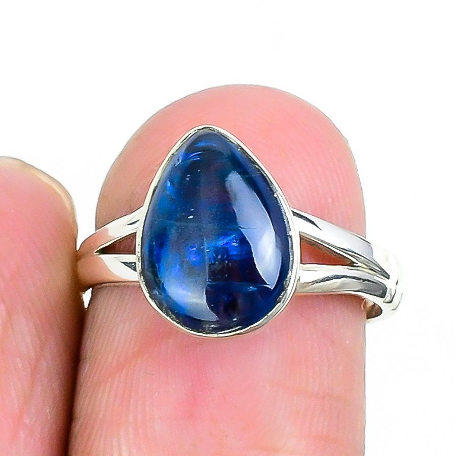 Kyanite Gemstone Solid Silver Sister Cluster Throat Chakra Ring Jewelry Size 7