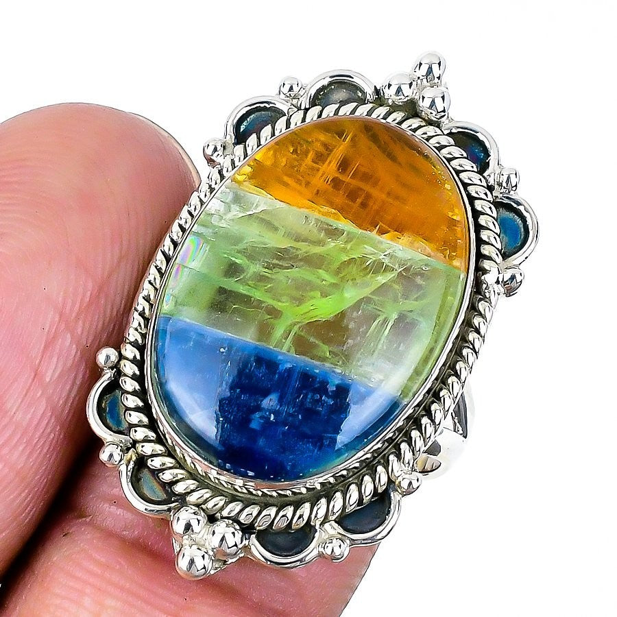 Kyanite Triplet Stone Sister Boho Statement Ring Jewelry Size 8 925 Solid Silver