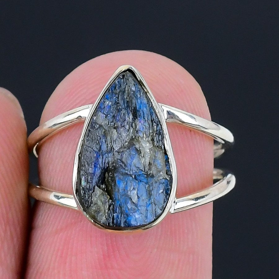 Labradorite drusy Stone Solid Sterling Silver New Statement Daughter Ring Size 7