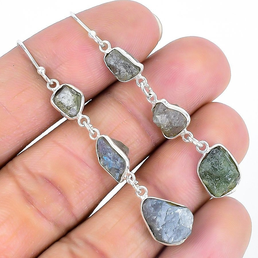 Labradorite Druzy Gemstone 925 Sterling Silver Dangling Mother Earrings Jewelry