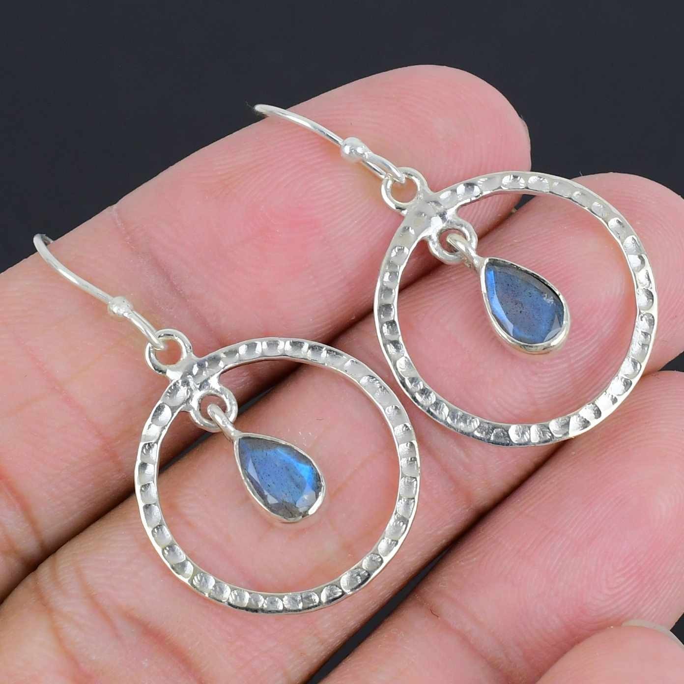 Labradorite faceted Stone 925 Silver Wedding Hook Dangle Drop Earrings Jewelry
