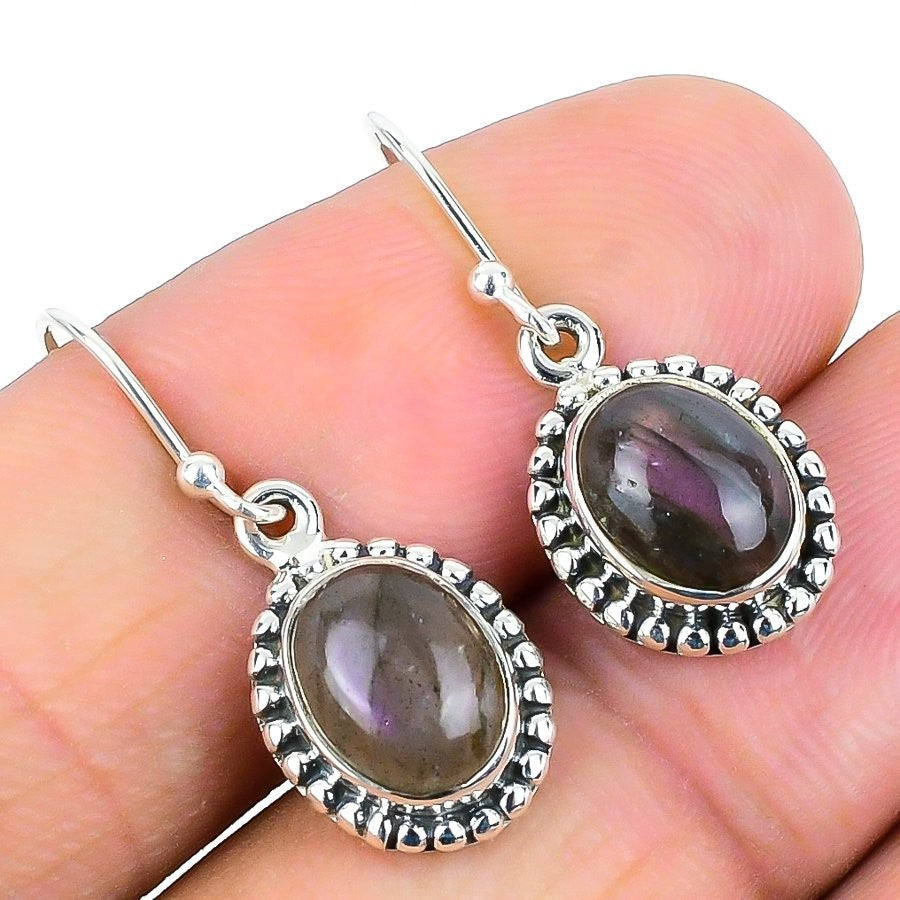 Labradorite Gemstone 925 Solid Silver Drop Dangle Hook Sister Elegant Earrings