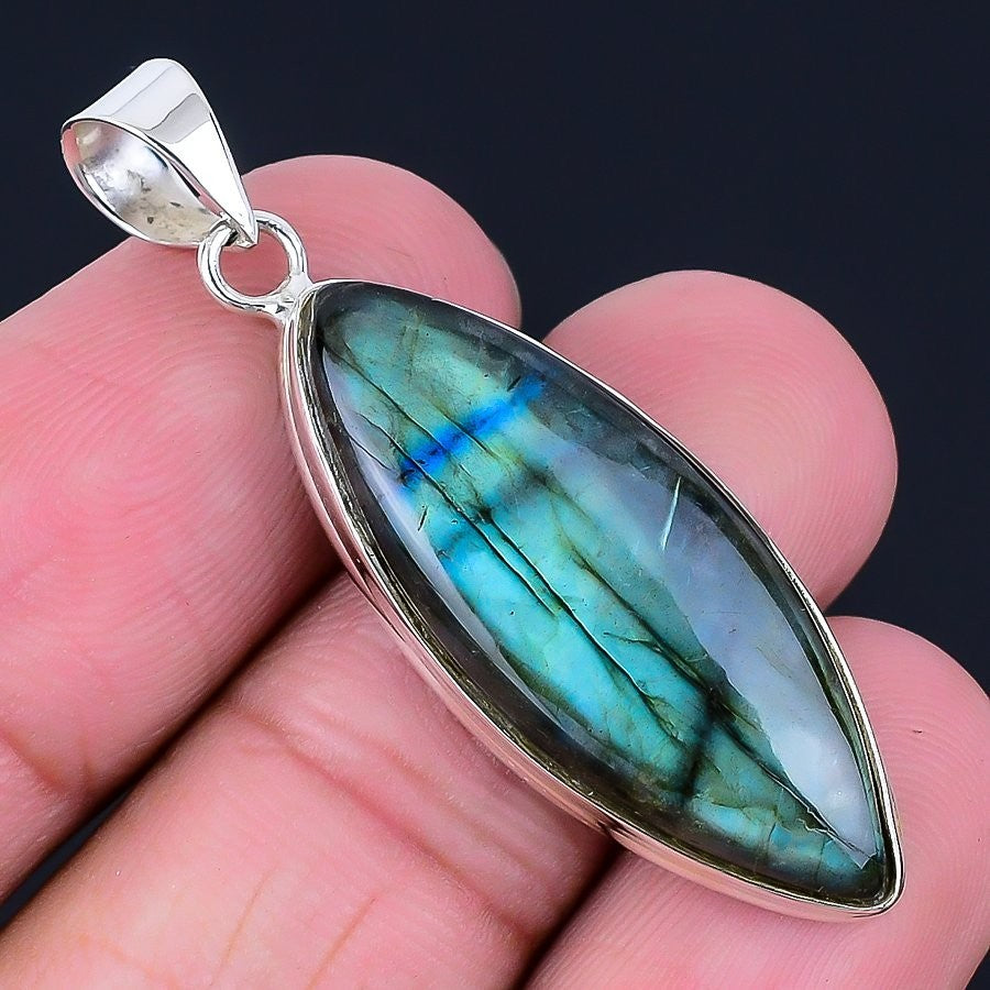 Labradorite Gemstone Channel Set Ethnic Wedding Pendant Jewelry 925�Solid�Silver