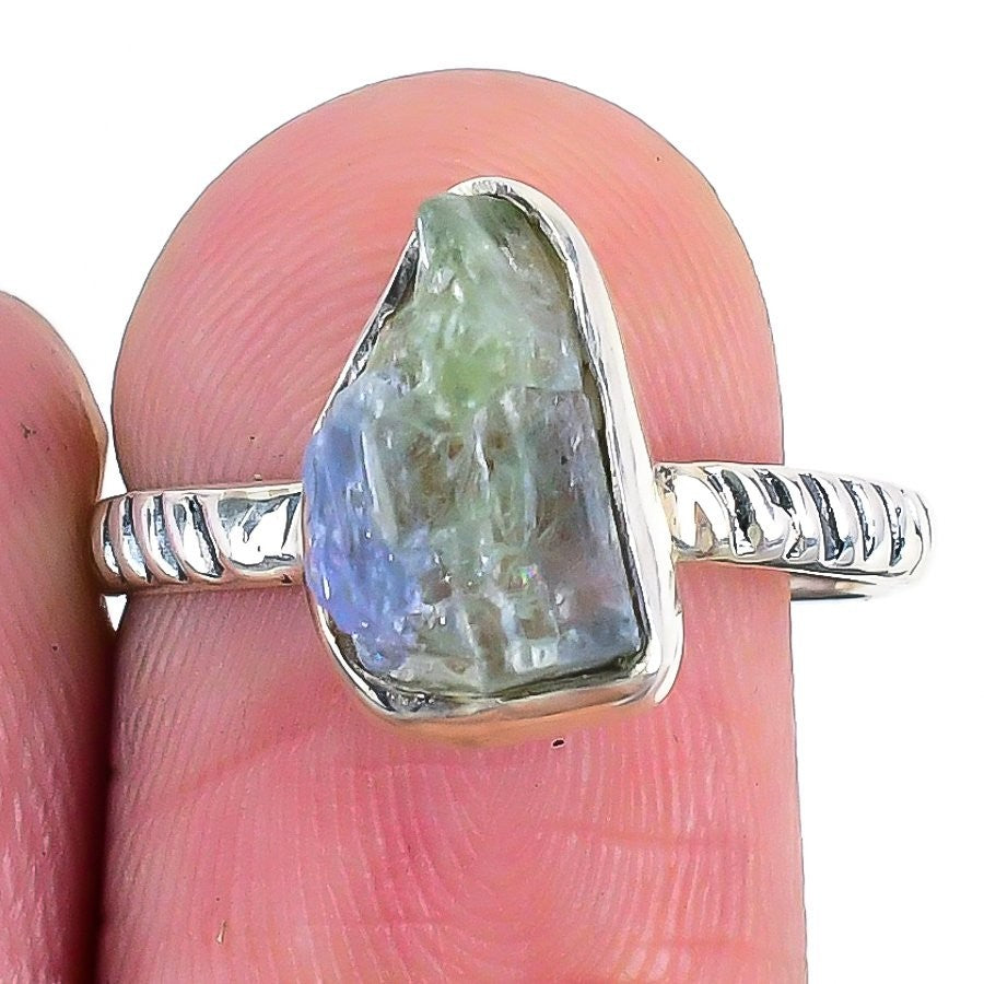 Labradorite Gemstone Solid Sterling Silver Wedding Stackable Statement Ring US 8