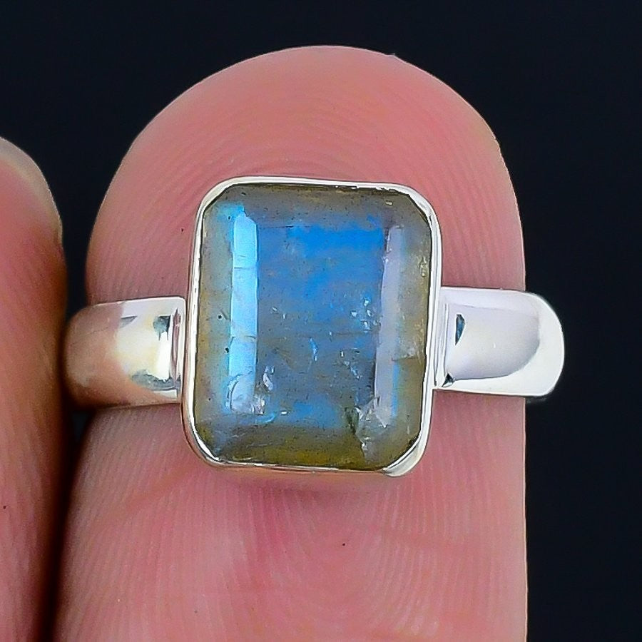 Labradorite Gemstone Sterling Silver Channel Set Statement Artisan Ring US 5.5