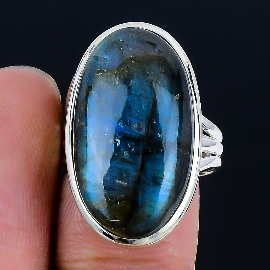 Labradorite Gemstone Sterling Silver Engagement Statement Wife Ring Jewelry US 8