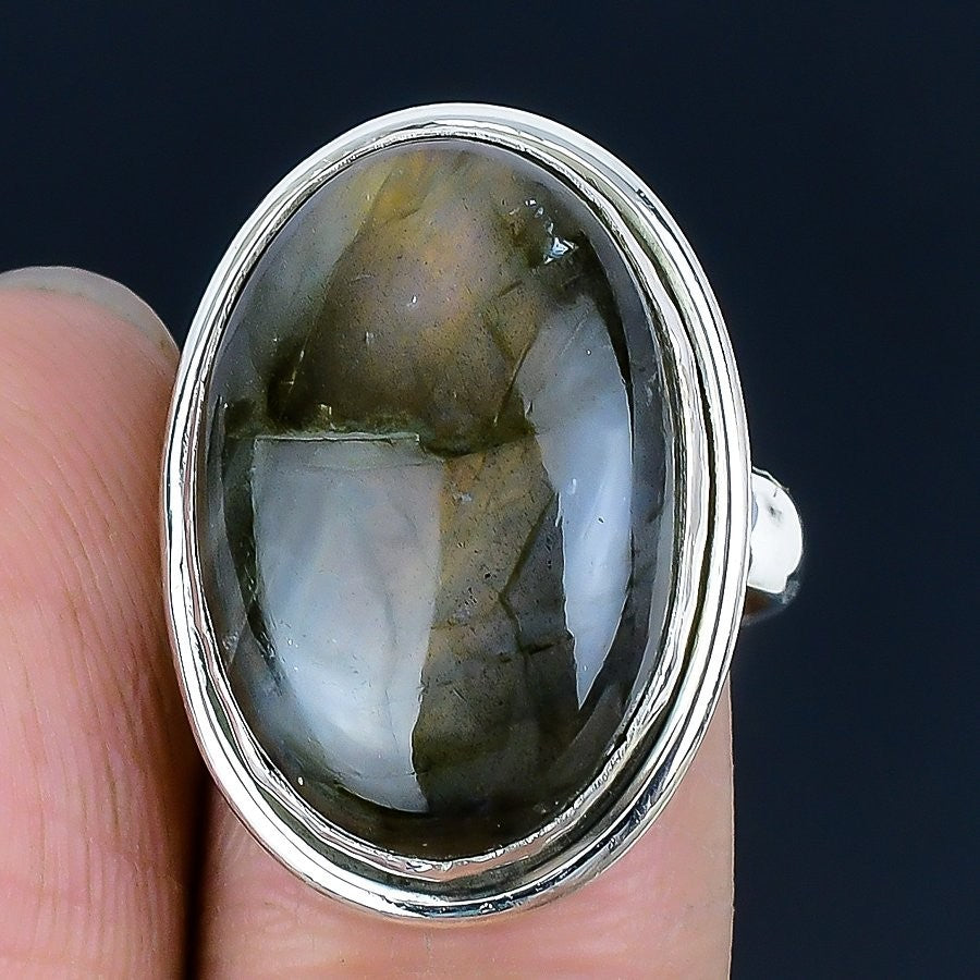 Labradorite Gemstone Sterling Silver Wedding Statement Sister Trendy Ring Size 8