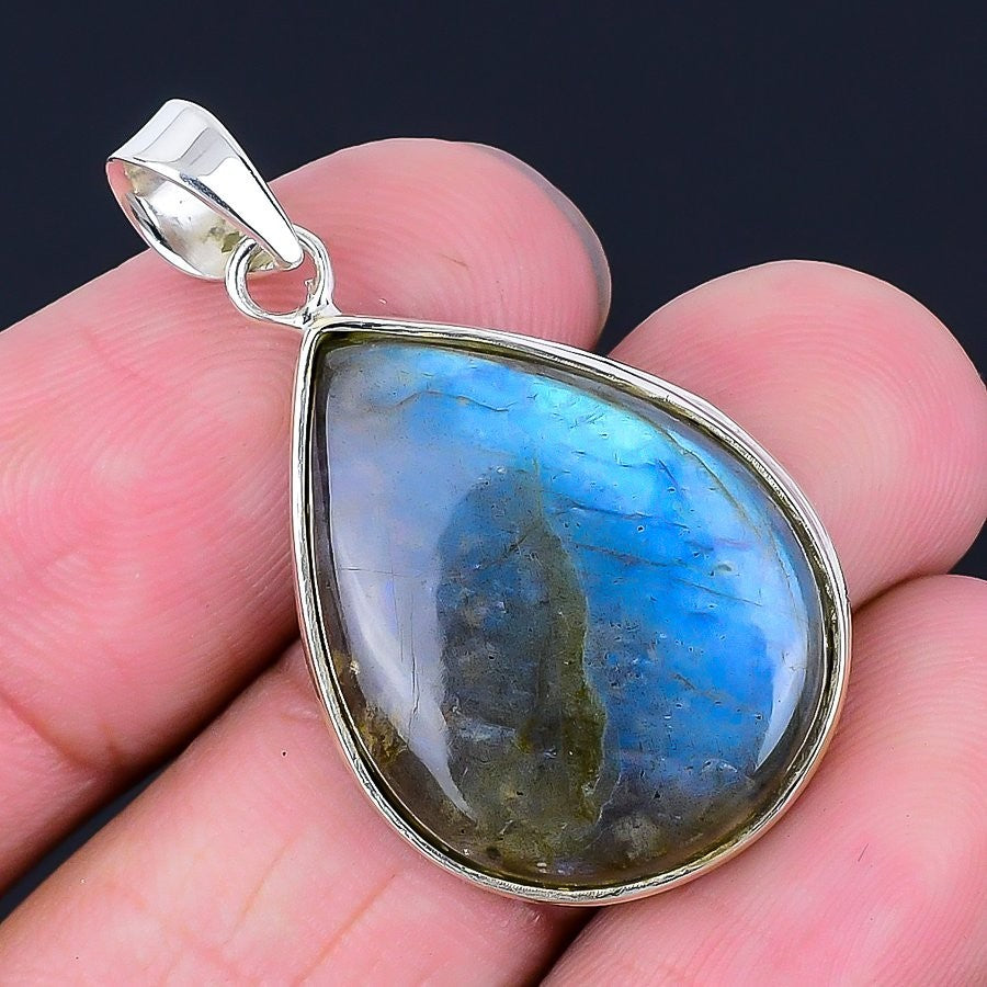 Labradorite Gemstone Third Eye Chakra Channel Set Unique Pendant Sterling Silver