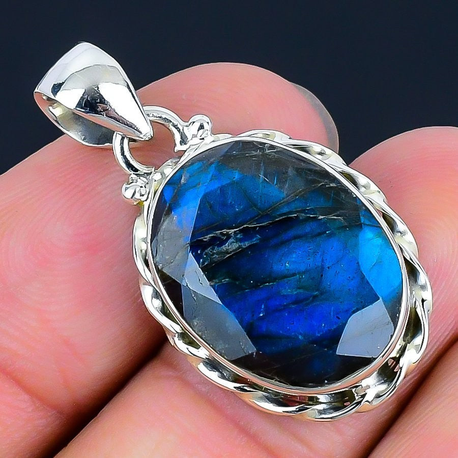 Elegant Labradorite Gemstone Wife Engagement Bezel Pendant J
