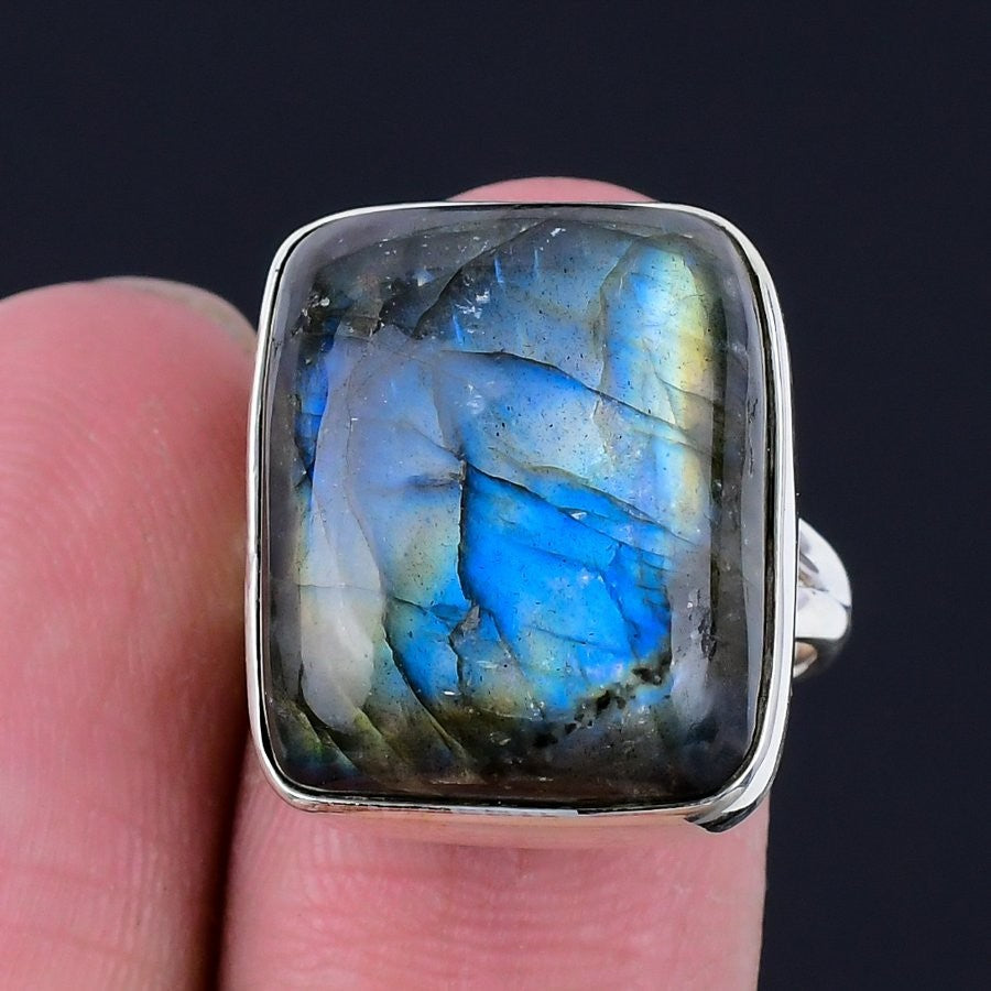 Labradorite Stone 925 Silver Sister Cluster Channel Set Handmade New Ring Size 7