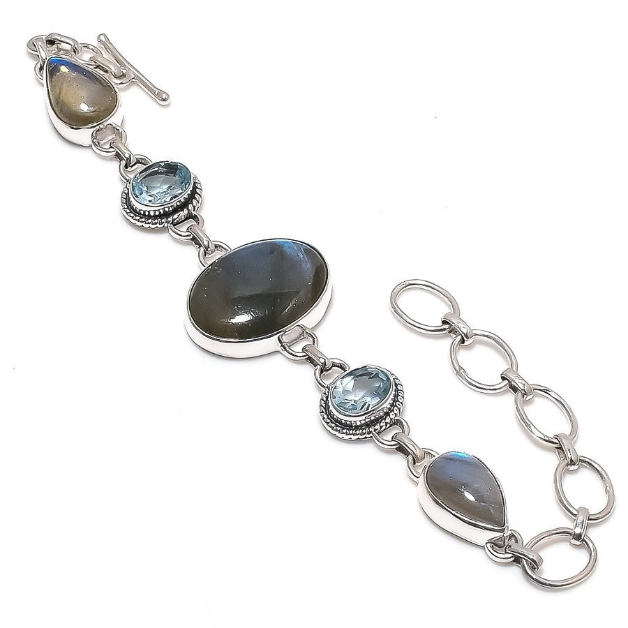 Labradorite Stone 925 Solid Silver Mother Daughters Day Hook Boho Chain Bracelet
