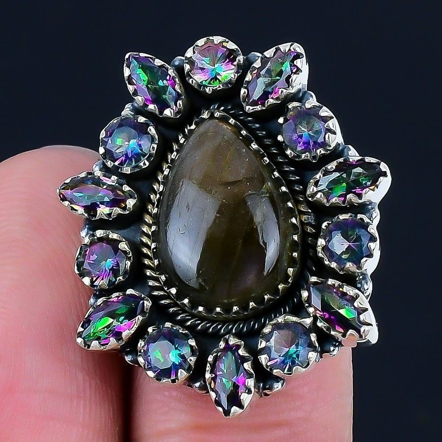 Labradorite Stone 925 Sterling Silver Daughters Day Statement Wife Ring Jewelry