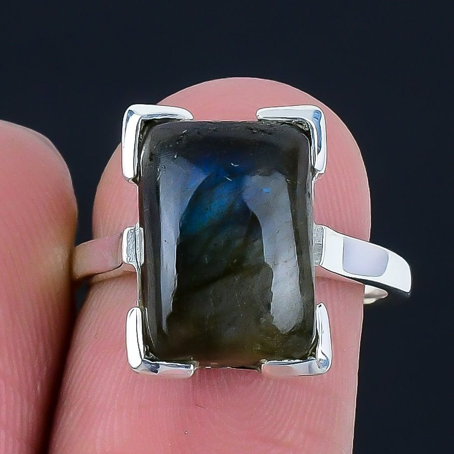 Labradorite Stone 925 Sterling Silver Engagement Sister Statement Ring Size 7