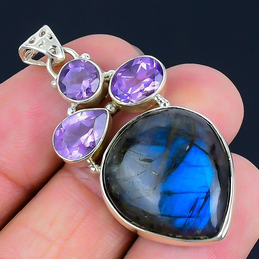 Labradorite Stone Mother Wedding Handcrafted Engagement Pendant 925 Solid Silver