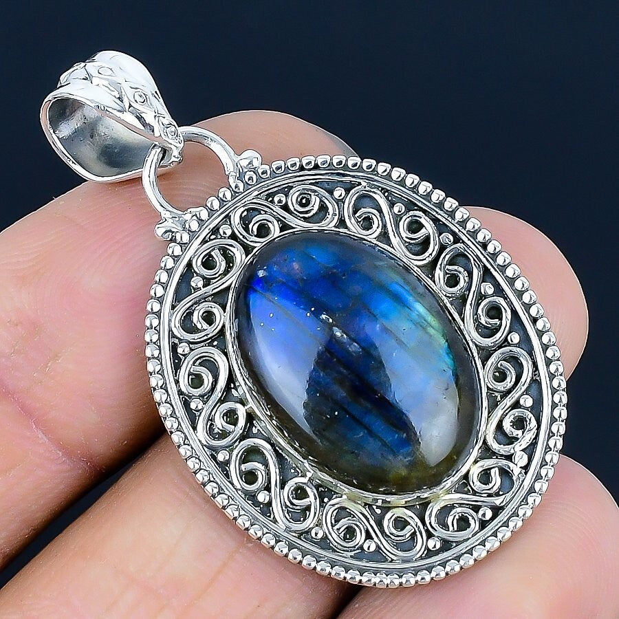 Labradorite Stone Solid Sterling Silver Birthday Third Eye Chakra Mother Pendant