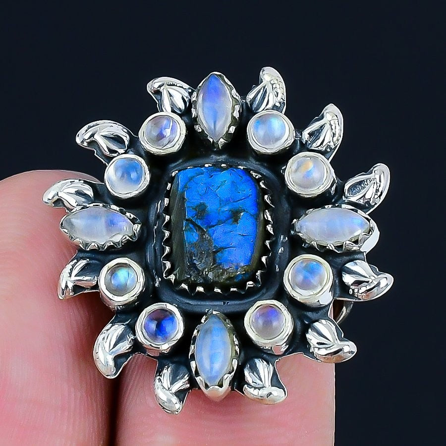 Labradorite Stone Solid Sterling Silver Engagement Trendy Statement Ring Jewelry