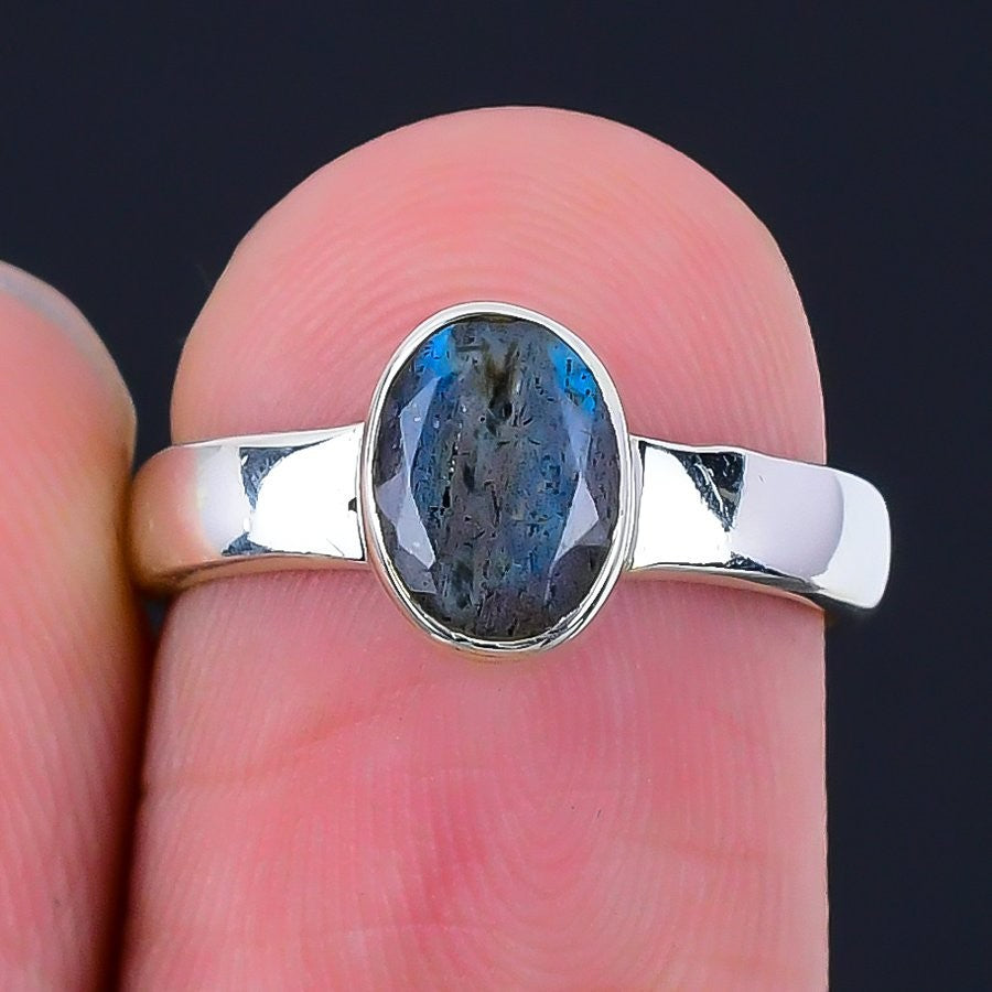 Labradorite Stone Solid Sterling Silver Statement Mother New Ring Jewelry Size 6