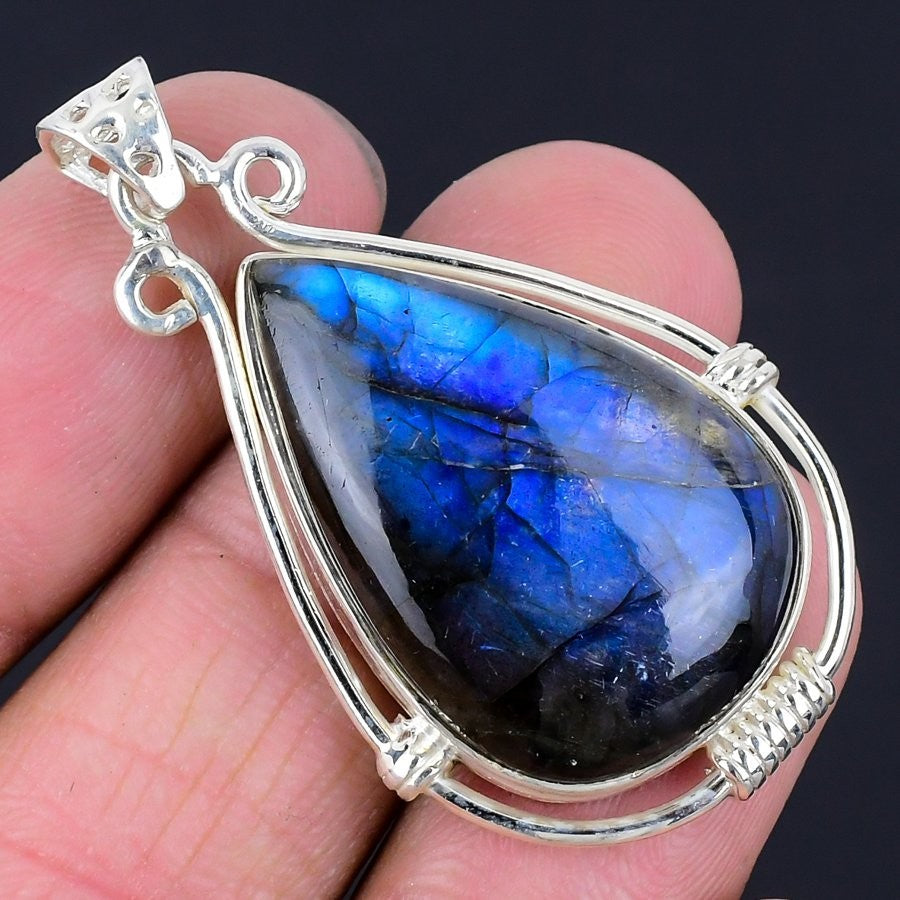 Labradorite Stone Sterling Silver Engagement Daughter Gift Boho Pendant Jewelry