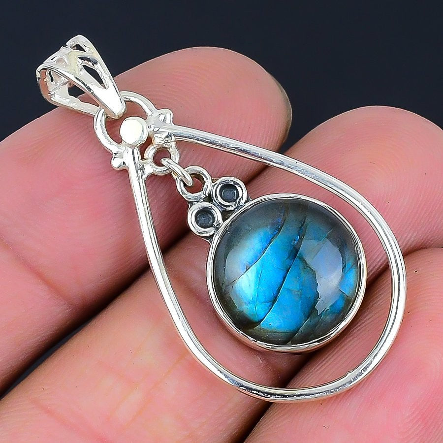 Labradorite Stone Trendy Birthday Ethnic Pendant Jewelry Solid Sterling Silver
